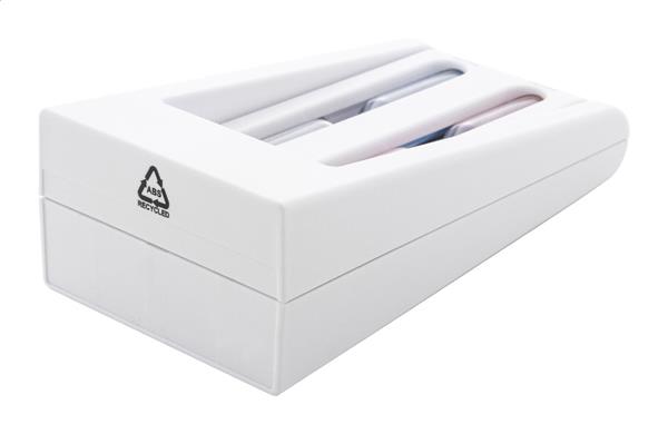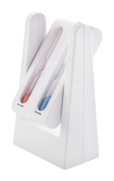 Czasomierz wykonany z recyklingowanego tworzywa ABS z obrotowymi klepsydrami (3- i 5-minutowymi). Description: Czasomierz wykonany z recyklingowanego tworzywa ABS z obrotowymi klepsydrami (3- i 5-minutowymi). Primary Color: biały Material 1: ABS z recyklingu Rozmiar: 65×116×40 mm