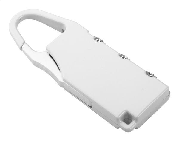 Metalowa kłódka do bagażu z 3 cyfrowym kodem. Description: Metalowa kłódka do bagażu z 3 cyfrowym kodem. Primary Color: biały Material 1: Metal Rozmiar: 20×65×8 mm