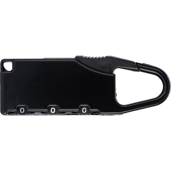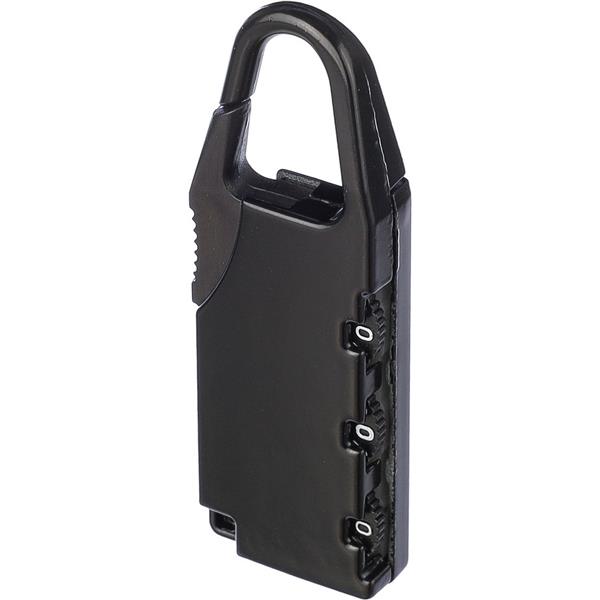 Kłódka podróżna z karabińczykiem umożliwiającym przypinanie, sprawdzi się podczas podróży jako zabezpieczenie walizki, produkt wykonany z metalu