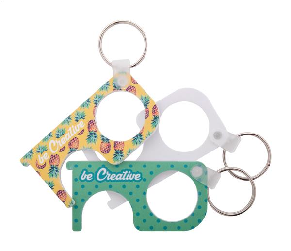 Description: Praktyczny klucz higieniczny z akrylu z personalizowaną grafiką, do naciskania przycisków i otwierania drzwi bez bezpośredniego kontaktu. Może być również używany jako brelok. Cena obejmuje nadruk UV LED z jednej strony. Min. ilość: 250 szt. Primary Color: biały Material 1: Akryl Rozmiar: 74×52,5 mm