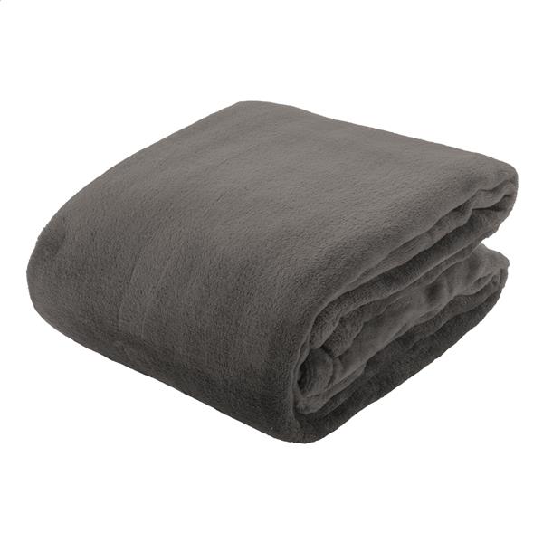 Koc flanelowy, 280 gr/m2. Zapakowany w białą wstążkę i papierową kartę do nadruku.