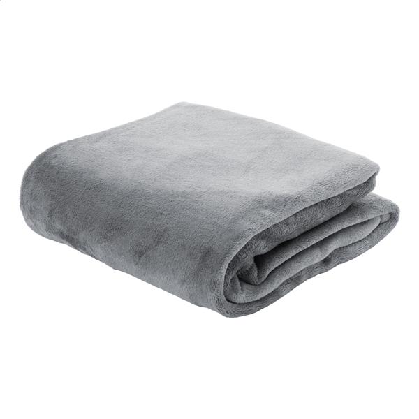 Koc flanelowy RPET, 260 gr/m2. Owinięty wstążką i kartą do nadruku.