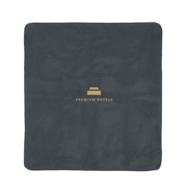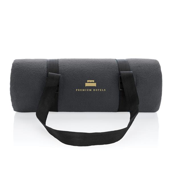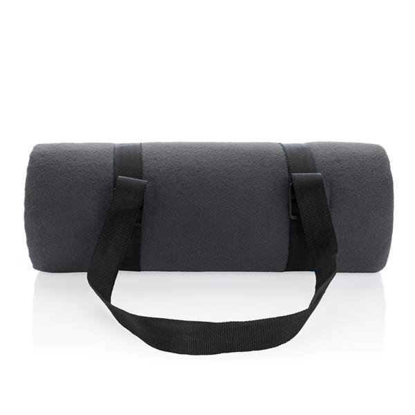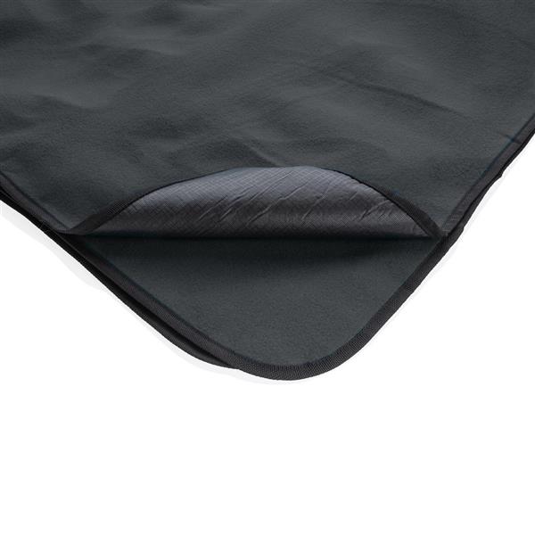 Koc piknikowy, pasek do zwijania i przenoszenia, powłoka hydrofobowa chroni przed zimnem i wilgocią, wykonany z RPET, do którego produkcji zostało ponownie wykorzystanych 27 butelek PET 0,5l, dzięki zastosowaniu technologii śledzącej AWARE™ wykorzystane włókna są identyfikowalne z pochodzenia, rozmiar 150×130 cm, 2% wpływów z każdego sprzedanego produktu z kolekcji Impact jest przekazywane na rzecz Water.org