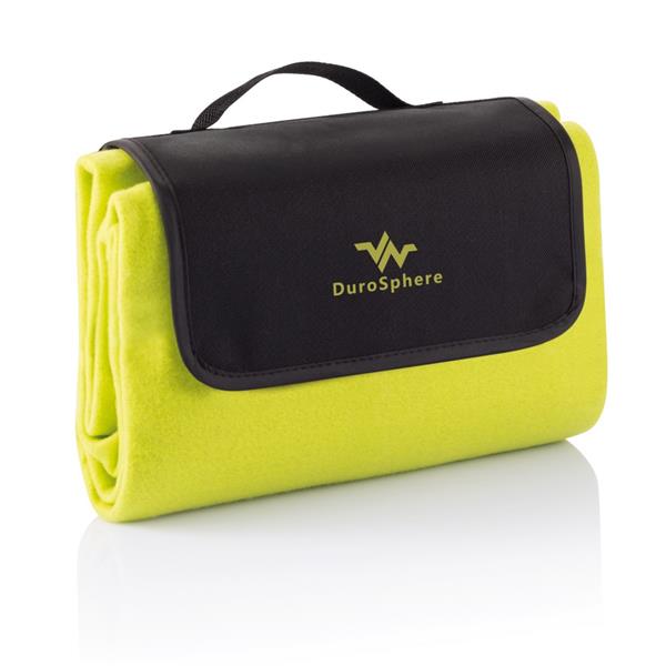 Koc piknikowy z wodoodpornym podbiciem, wykonany z polaru 160GSM, EPE i PE, rozmiar rozłożonego koca 130 x 145 cm, ślad węglowy produktu: 3,97 kg CO2