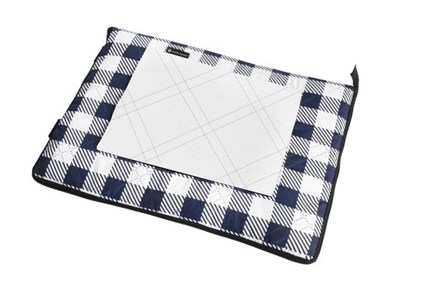 Praktyczny rozkładany koc piknikowy marki Vanilla Season. Wykonany z wytrzymałego materiału Oxford z wypełnieniem z poliestru. Dolna strona koca wykonana jest z wodoodpornej tkaniny Oxford 210D. Koc ma niebiesko-biały pikowany wzór, w złożonym stanie zamykany na zamek błyskawiczny, posiada regulowany uchwyt do noszenia oraz białą kieszonkę o wymiarach 24 × 32 cm. Rekomendowana technologia druku: […]