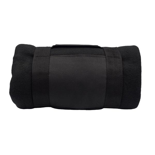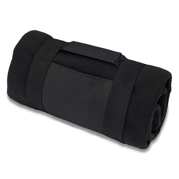 Polarowy koc o gramaturze 180 g/m2 obszyty maszynowo, wyposażony w poręczny uchwyt do przenoszenia. Rozmiar po rozłożeniu: 120 x 150 cm. Doskonały na imprezy pod gołym niebem.