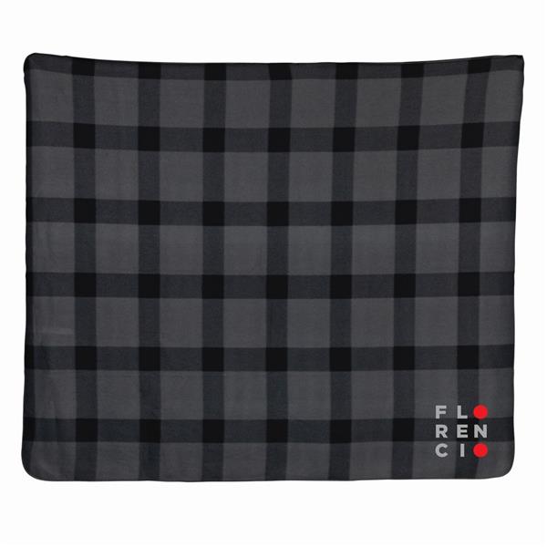 Koc w kratę, wykonany z dwuwarstwowego polaru o gramaturze 180 g/m2, wymiary 127×152 cm, ślad węglowy produktu: 4,34 kg CO2
