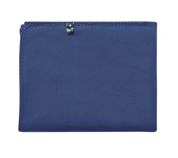 Koc polarowy z RPET w pokrowcu. RPET poliester (200 g/m2).