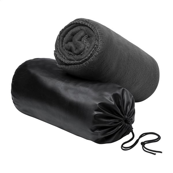 Koc polarowy z RPET w pokrowcu. RPET poliester (200 g/m2).