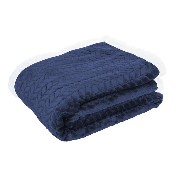 Dwuwarstwowy koc RPET z żakardowym wzorem. Z polarem flanelowym RPET 240 g/m2 i podszewką z polaru sherpa RPET 210 g/m2. Owinięty wstążką i kartą do nadruku.
