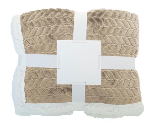 Dwuwarstwowy koc RPET z żakardowym wzorem. Z polarem flanelowym RPET 240 g/m2 i podszewką z polaru sherpa RPET 210 g/m2. Owinięty wstążką i kartą do nadruku.