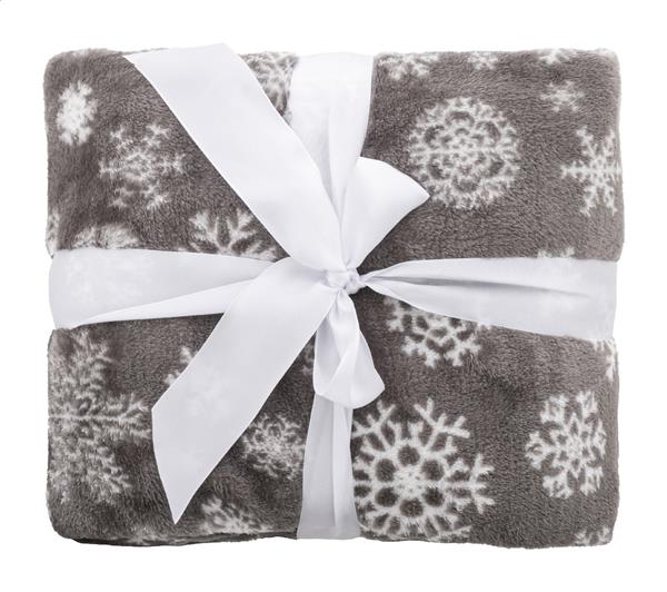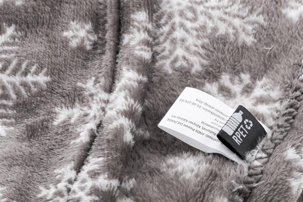 Koc świąteczny z flaneli polarowej RPET, 260 g/m2. Z kartką papierową do nadruku i wstążką.