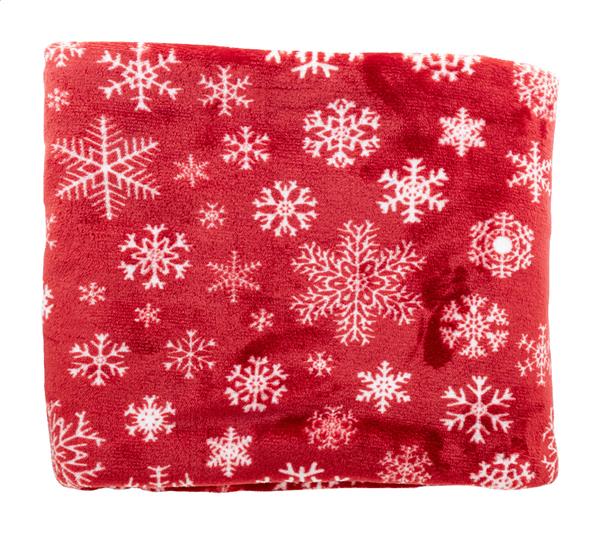 Koc świąteczny z flaneli polarowej RPET, 260 g/m2. Z kartką papierową do nadruku i wstążką.