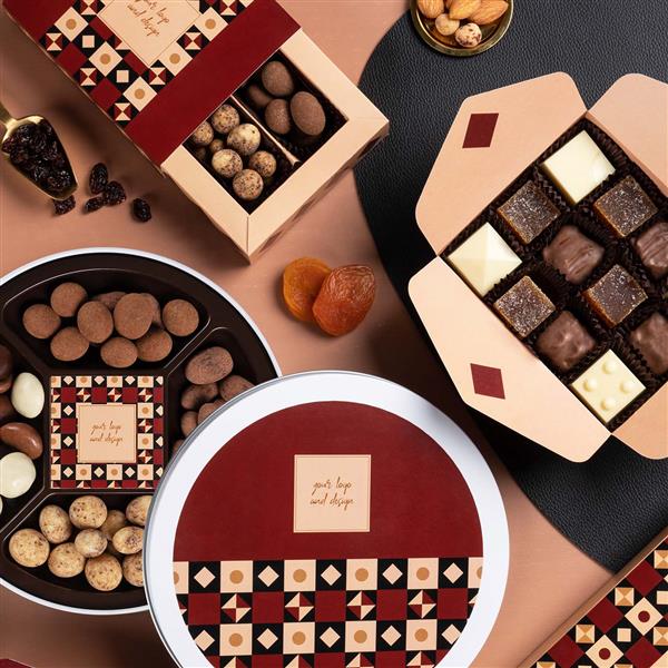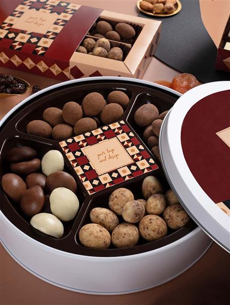 Całość jest starannie zapakowana w białą, okrągłą, metalową puszkę, która dodaje elegancji i sprawia, że zestaw idealnie nadaje się na prezent. Słodycze zabezpieczone są w wyprasce z R-PET.
