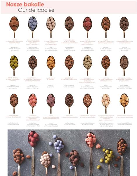 rodzynki w białej czekoladzie obtoczone kawą.