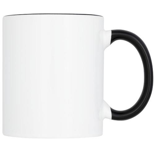 Ten klasyczny kubek ceramiczny posiada specjalną powłokę do sublimacji. Wnętrze kubka pasuje kolorystycznie do uchwytu. Zgodny z normą EN12875-1. Można myć w zmywarce również po naniesieniu dekoracji. Pojemność wynosi 330ml. Zapakowany w białe pudełko.