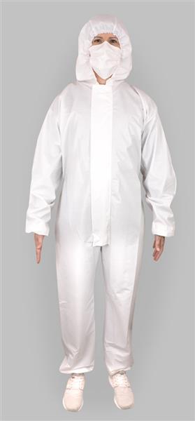 Kombinezon wykonany z tkaniny zgodnej z normami PN-EN 14126:2005 i ISO 16604:2004(E) Posiada kaptur Posiada certyfikat OEKO-TEX Posiada gumki w nadgarstkach, kostkach, kapturze oraz talii Wielokrotnego użytku Zapinany na suwak