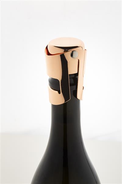 Zatyczka/korek do szampana ze stali nierdzewnej z metalicznym wykończeniem.