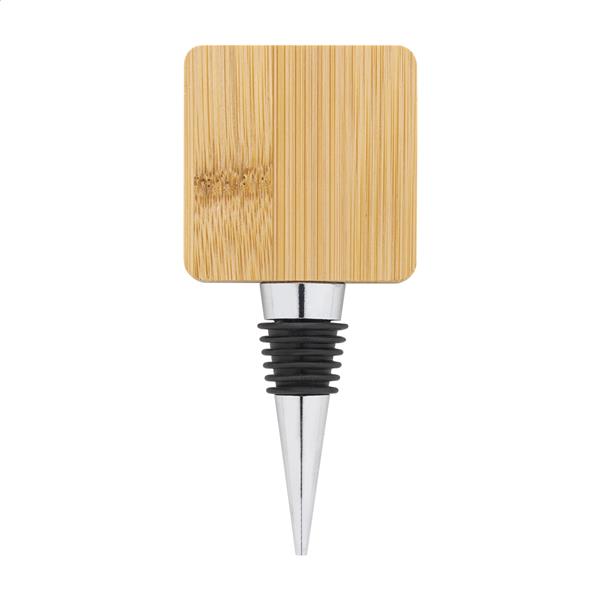 Metalowy korek do wina z kwadratowym otwieraczem do butelek z bambusa.