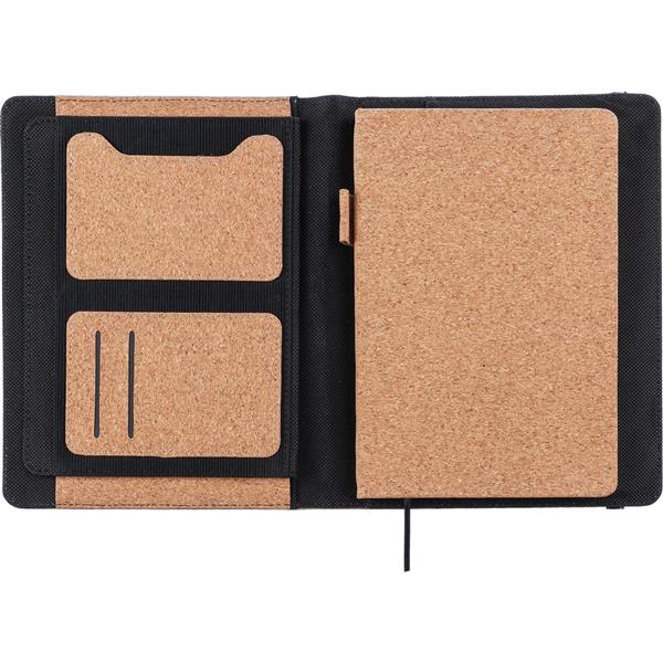 Korkowa teczka konferencyjna A5, elastyczna opaska zamykająca, pętelka na długopis, wyjmowany notatnik A5 (192 kartki z papieru z recyklingu w linie o gramaturze 70 g/m2), produkt wykonany z korka, papieru i poliestru