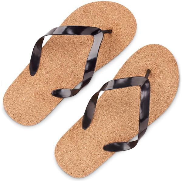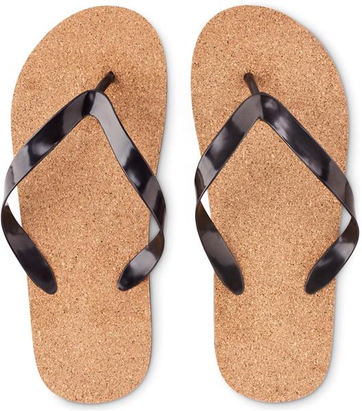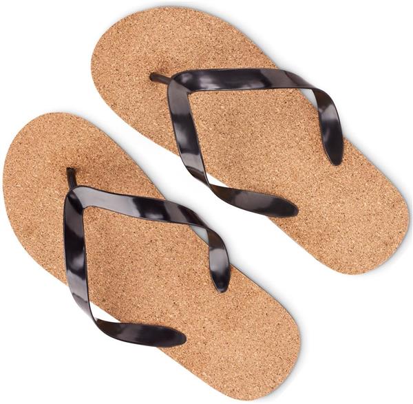 Kapcie plażowe z podeszwą z korka i EVA oraz paskami z PVC. rozmiar M pasuje na 36-39. Korek jest materiałem w 100% naturalnym. Ze względu na jego strukturę i porowatość powierzchni ostateczny wygląd nadruku na każdym artykule może się różnić.