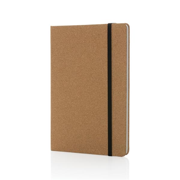 Notatnik A5 (80 białych kartek w linie o gramaturze 120 g/m2), twarda okładka wykonana z korka z certyfikatem FSC®, tasiemka zakładkowa, strony z papieru kamiennego, w opakowaniu z papieru kraftowego z certyfikatem FSC® mix, ślad węglowy produktu: 0 kg CO2