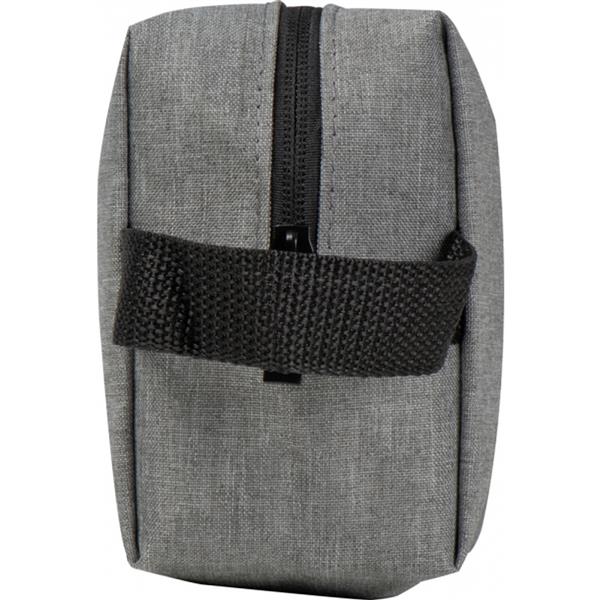 Kosmetyczka wykonana z poliestru pochodzącego z recyklingu, zamykana na zamek, z wygodnym uchwytem do przenoszenia.
