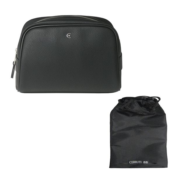 Neseser Hamilton z czarną drobnoziarnistą fakturą imitującą skórę oraz z wysokiej jakości podszewką z nylonu. Na przedniej części torby znajduje się charakterystyczne chromowane logo CERRUTI. Na bocznej ściance znajduje się z kolei chromowana tabliczka z logo CERRUTI 1881. Zamki również wykończone w kolorze chromowanym. Neseser jest precyzyjnie wykończony. zarówno od wewnątrz, jak i z zewnątrz.