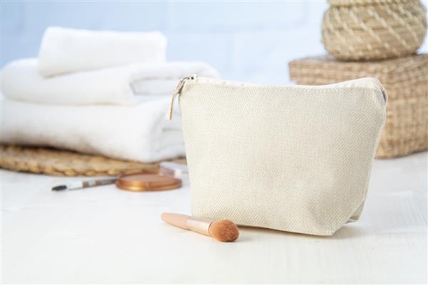 Zapinana na zamek kosmetyczka z poliestru w naturalnym kolorze.