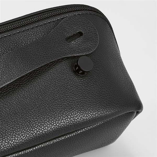 Nasza kosmetyczka z recyklingowanej skóry pozwala bez trudu uporządkować niezbędne drobiazgi. Rozpinany zamek błyskawiczny odsłania dwie duże przegrody (3,5L). Wodoodporna powierzchnia zwiększa trwałość. Zapakowana w pojedynczą biodegradowalną torebkę foliową.