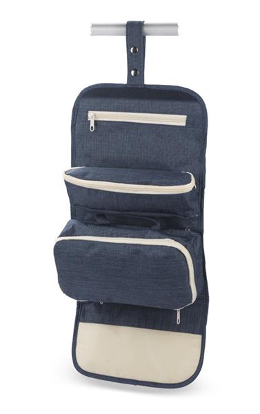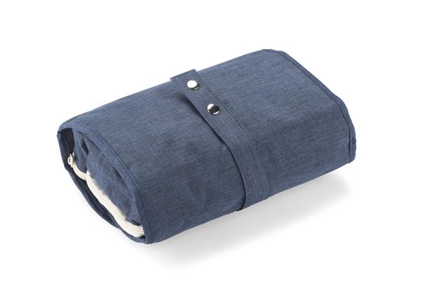 Rozwijana kosmetyczka ROLLI sprawdzi się w każdej podróży. Kosmetyczka wyposażona jest w dwie mniejsze odpinane saszetki, w kieszonkę zamykaną na zamek oraz uchwyt umożliwiający przyczepienie kosmetyczki w łazience np. do wieszaka na ręcznik. Kosmetyczka wykonana z przyjemnego dwunitkowego poliestru 300D.