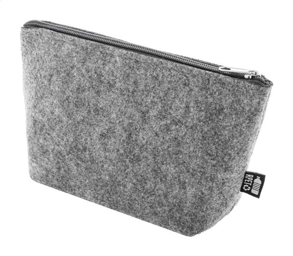Zapinana na suwak kosmetyczka z filcu RPET. Z charakterystyczną metką RPET. Description: Zapinana na suwak kosmetyczka z filcu RPET. Z charakterystyczną metką RPET. Primary Color: szary Pojemność torby: 1.2 l Material 1: Filc PET z recyklingu Rozmiar: 160×134×75 mm