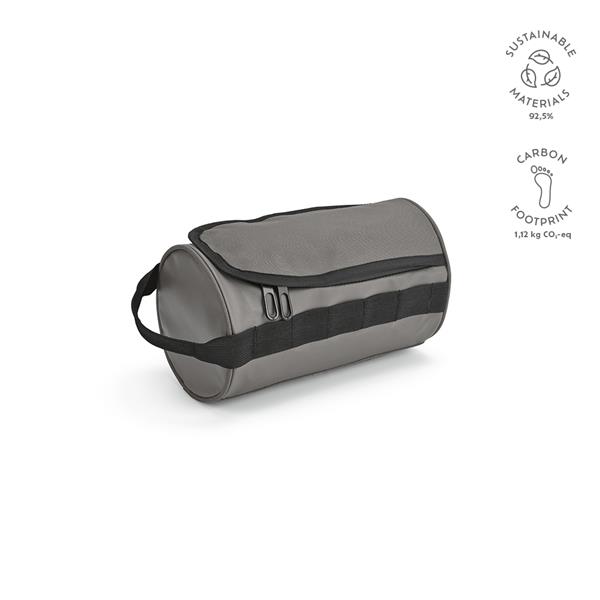 Podróżuj w sposób zrównoważony z naszą poliestrową kosmetyczką z recyklingu (5,7L). Wykonana z materiału 600D rPET w 2 różnych wersjach. Wodoodporny materiał chroni niezbędne rzeczy, a dwustronny zamek błyskawiczny zapewnia łatwy dostęp do kieszeni w kształcie litery U. Pętla do zawieszania zwiększa wygodę.