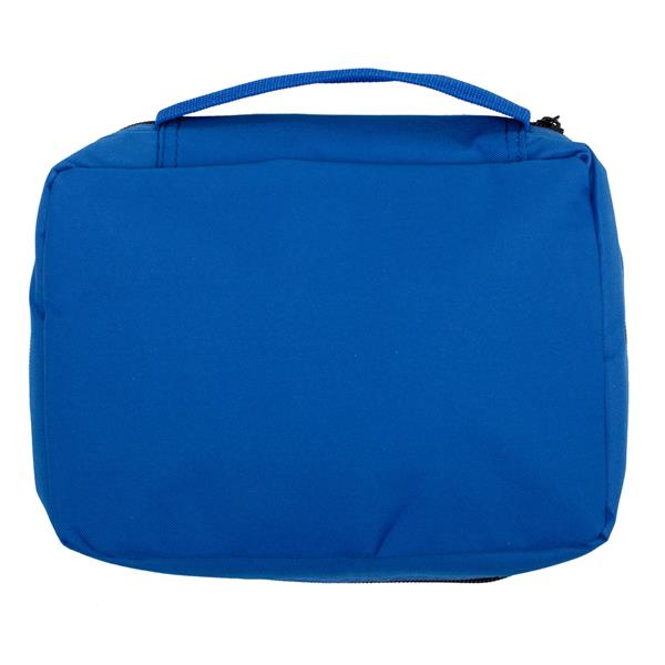 Nadzwyczaj praktyczna, trwała i pojemna kosmetyczka zamykana na zamek. Wyposażona w haczyk, dwie kieszonki z siatki zamykane na zamek i cztery otwarte, głębokie przegródki. Kosmetyki nie są dołączone.