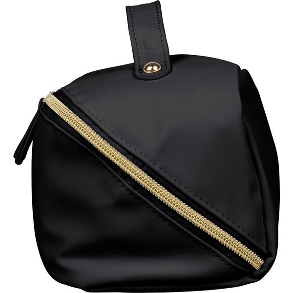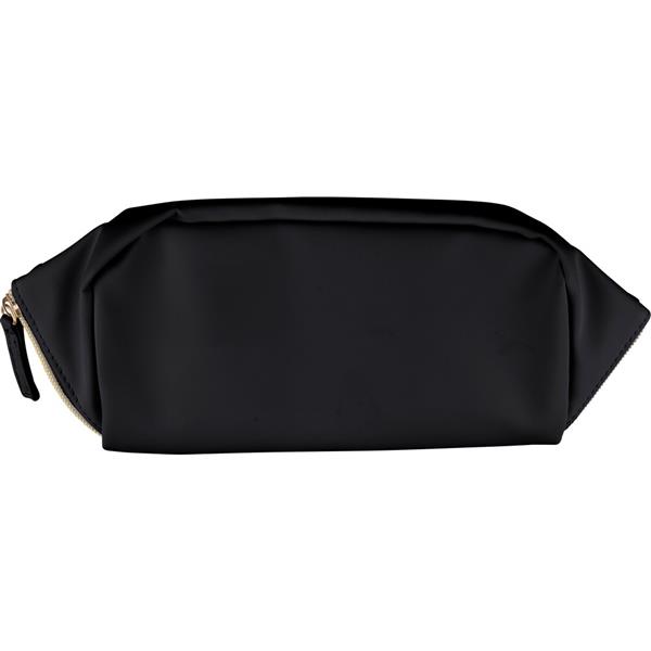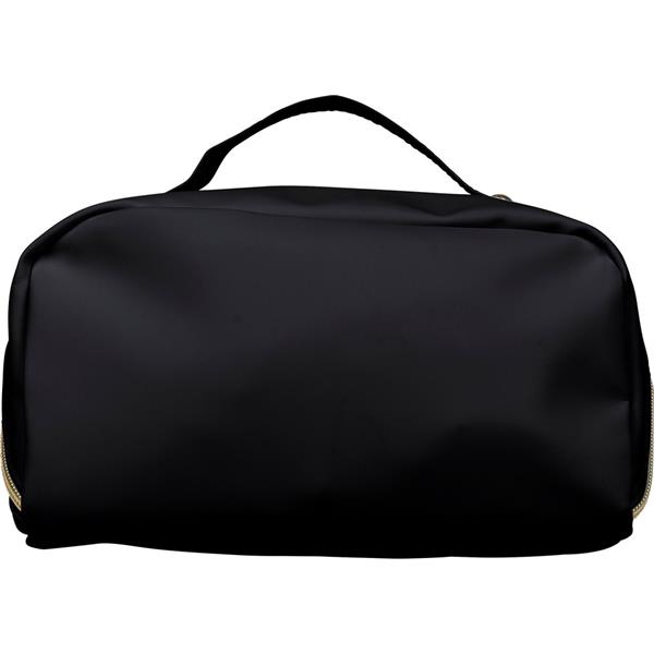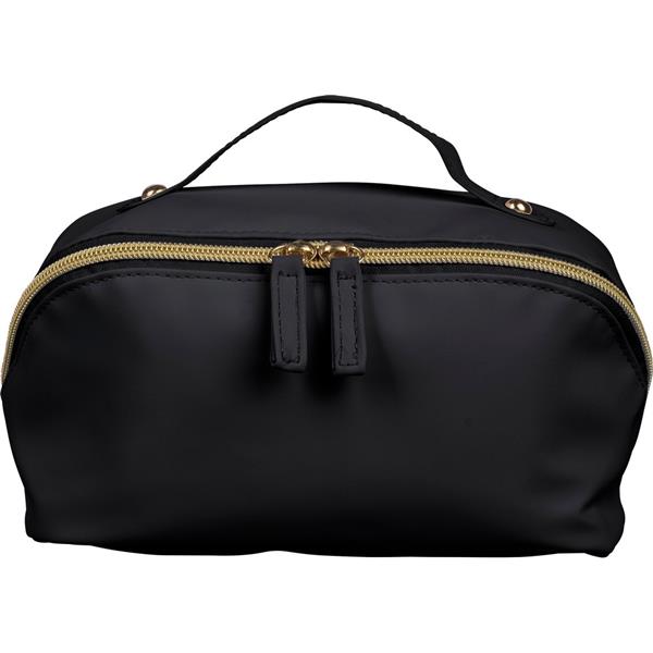 Kosmetyczka zapinana na zamek, krótki uchwyt do noszenia, podszewka z poliestru 210D w środku, duża kieszeń zapinana na zamek, w środku mała kieszeń zapinana na zamek ikona recyklingu na metce, produkt wykonany z PU z recyklingu i poliestru