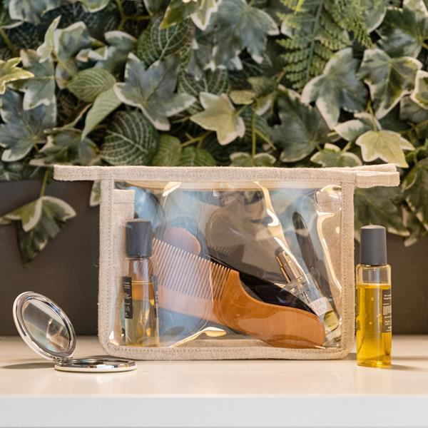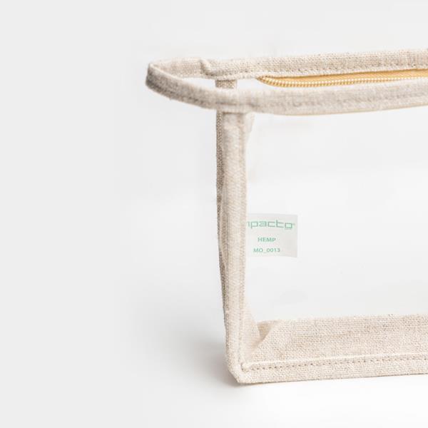 Kosmecztyka wykonana z włókna konopnego oraz PEVA. Dzięki przezroczystemu okienku idealnie nadaje się na podróże samolotowe. Zamykana na zamek blyskawiczny.