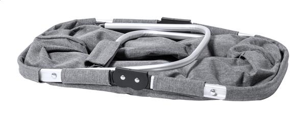 Składany kosz piknikowy z poliestru 600D RPET, z aluminiową ramą i przednią kieszenią zapinaną na suwak. Z charakterystyczną metką RPET.