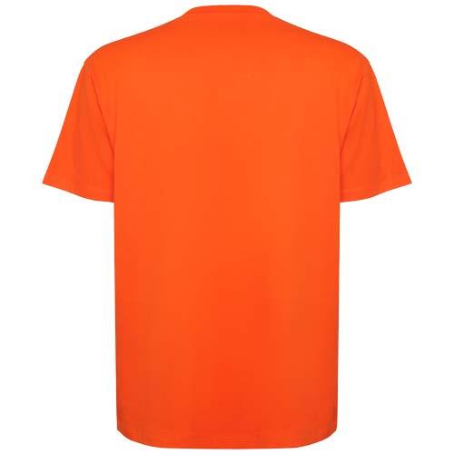 Ovesizowa koszulka z krótkim rękawem. Okrągły kołnierzyk wykończony ściągaczem 2×1 z dopasowanymi obszyciami szwów. Szwy boczne. Szerokie podwójne szwy na rękawach i u dołu. Usuwalna etykieta.