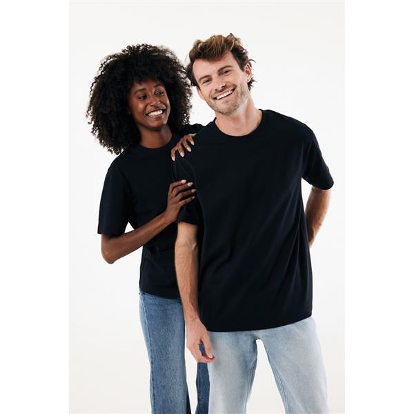 Koszulka, unisex, nowoczesny krój, okrągły dekolt, krótkie rękawy, wykonana w 50% z bawełny z recyklingu i w 50% z bawełny organicznej o gramaturze 220 g/m2, bez dodatku poliestru, posiada wbudowany znacznik AWARE™, który potwierdza wykorzystanie materiałów z recyklingu, posiada kod QR na metce, który prowadzi do cyfrowego paszportu produktu, 2% wpływów z każdego sprzedanego produktu jest przekazywane na rzecz Water.org