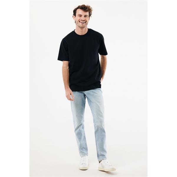 Koszulka, unisex, nowoczesny krój, okrągły dekolt, krótkie rękawy, wykonana w 50% z bawełny z recyklingu i w 50% z bawełny organicznej o gramaturze 220 g/m2, bez dodatku poliestru, posiada wbudowany znacznik AWARE™, który potwierdza wykorzystanie materiałów z recyklingu, posiada kod QR na metce, który prowadzi do cyfrowego paszportu produktu, 2% wpływów z każdego sprzedanego produktu jest przekazywane na rzecz Water.org