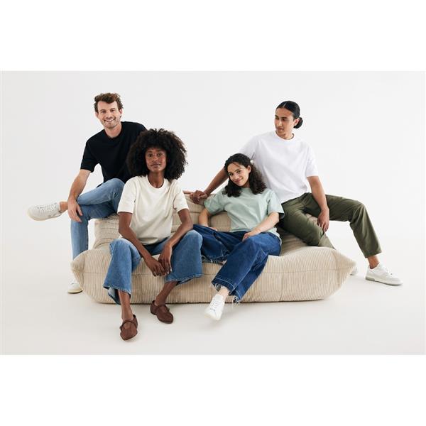 Koszulka, unisex, nowoczesny krój, okrągły dekolt, krótkie rękawy, wykonana w 50% z bawełny z recyklingu i w 50% z bawełny organicznej o gramaturze 220 g/m2, bez dodatku poliestru, posiada wbudowany znacznik AWARE™, który potwierdza wykorzystanie materiałów z recyklingu, posiada kod QR na metce, który prowadzi do cyfrowego paszportu produktu, 2% wpływów z każdego sprzedanego produktu jest przekazywane na rzecz Water.org