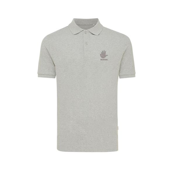 Koszulka polo, unisex, zapięcie na 2 guziki, regularny krój, splot Pique, 2 rozporki po bokach, krótkie rękawy, wykonana w 50% z bawełny z recyklingu i w 50% z bawełny organicznej o gramaturze 220 g/m2, bez dodatku poliestru, posiada wbudowany znacznik AWARE™, który potwierdza wykorzystanie materiałów z recyklingu, posiada kod QR na metce, który prowadzi do cyfrowego paszportu produktu, 2% wpływów z każdego sprzedanego produktu z kolekcji Impact jest przekazywane na rzecz Water.org