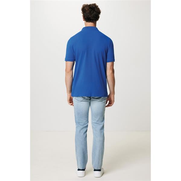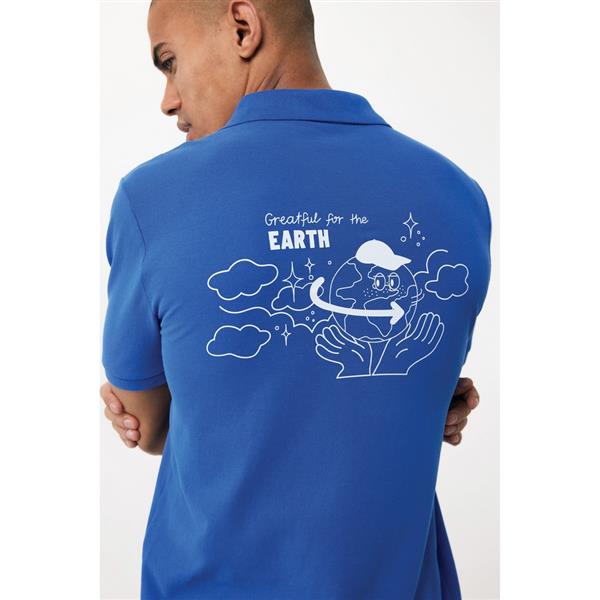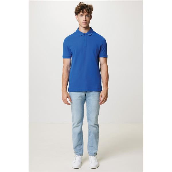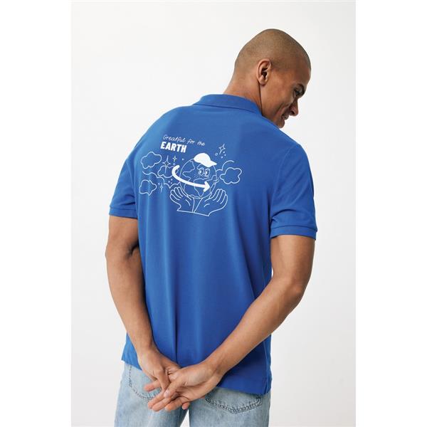 Koszulka polo, unisex, zapięcie na 2 guziki, regularny krój, splot Pique, 2 rozporki po bokach, krótkie rękawy, wykonana w 50% z bawełny z recyklingu i w 50% z bawełny organicznej o gramaturze 220 g/m2, bez dodatku poliestru, posiada wbudowany znacznik AWARE™, który potwierdza wykorzystanie materiałów z recyklingu, posiada kod QR na metce, który prowadzi do cyfrowego paszportu produktu, 2% wpływów z każdego sprzedanego produktu z kolekcji Impact jest przekazywane na rzecz Water.org