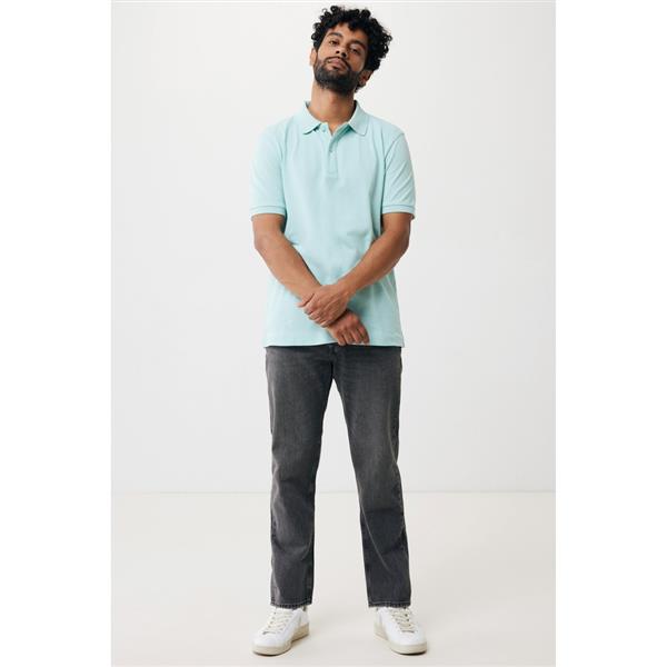 Koszulka polo, unisex, zapięcie na 2 guziki, regularny krój, splot Pique, 2 rozporki po bokach, krótkie rękawy, wykonana w 50% z bawełny z recyklingu i w 50% z bawełny organicznej o gramaturze 220 g/m2, bez dodatku poliestru, posiada wbudowany znacznik AWARE™, który potwierdza wykorzystanie materiałów z recyklingu, posiada kod QR na metce, który prowadzi do cyfrowego paszportu produktu, 2% wpływów z każdego sprzedanego produktu z kolekcji Impact jest przekazywane na rzecz Water.org