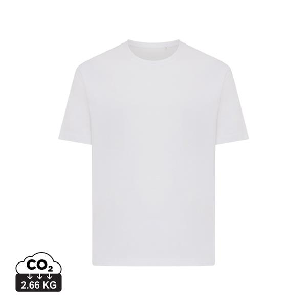 Koszulka, unisex, regularny krój, okrągły dekolt, krótkie rękawy, wykonana w 50% z bawełny z recyklingu i w 50% z bawełny organicznej o gramaturze 180 g/m2, bez dodatku poliestru, posiada wbudowany znacznik AWARE™, który potwierdza wykorzystanie materiałów z recyklingu, posiada kod QR na metce, który prowadzi do cyfrowego paszportu produktu, 2% wpływów z każdego sprzedanego produktu z kolekcji Impact jest przekazywane na rzecz Water.org, ślad węglowy produktu: 2,66 kg CO2