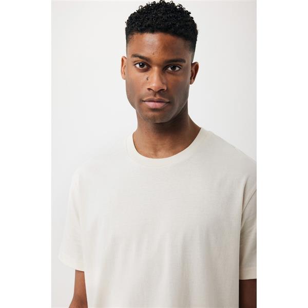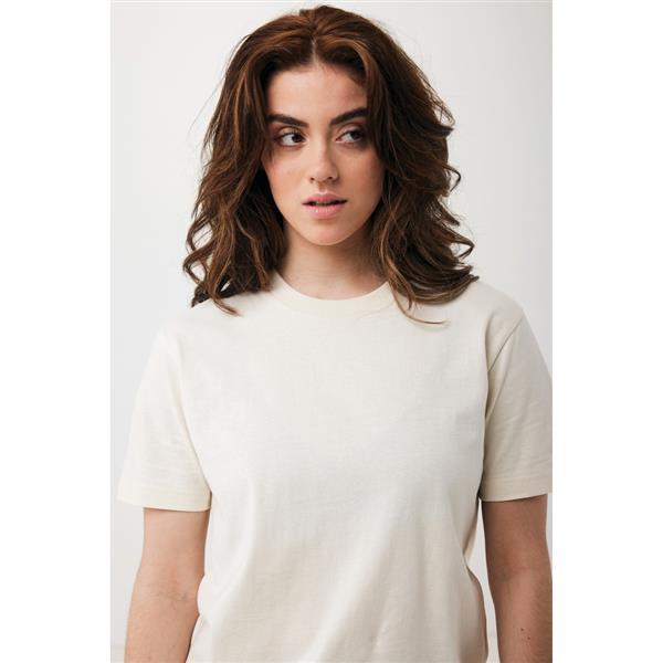 Koszulka, unisex, regularny krój, okrągły dekolt, krótkie rękawy, wykonana w 50% z bawełny z recyklingu i w 50% z bawełny organicznej o gramaturze 180 g/m2, bez dodatku poliestru, posiada wbudowany znacznik AWARE™, który potwierdza wykorzystanie materiałów z recyklingu, posiada kod QR na metce, który prowadzi do cyfrowego paszportu produktu, 2% wpływów z każdego sprzedanego produktu z kolekcji Impact jest przekazywane na rzecz Water.org