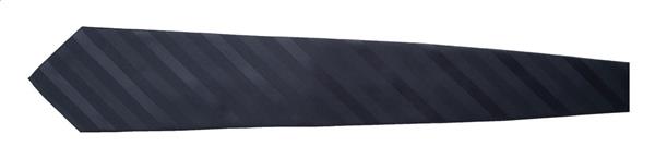 Krawat z mikrofibry z wzorem w paski. Pakowany w folię na czarnym wieszaku.