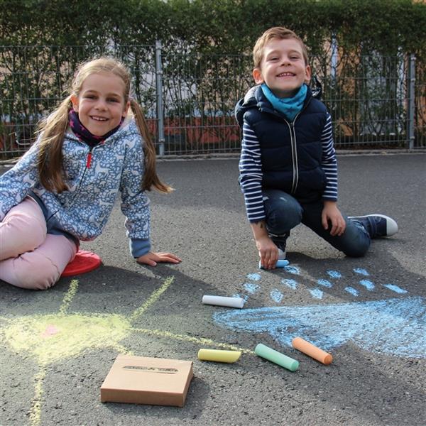 Kreda w sześciu kolorach zapakowana w pudełko.
