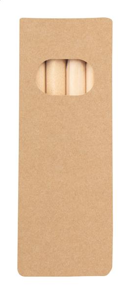 Description: Drewniane kredki (4 szt.) w kartoniku z full kolorowym nadrukiem. Cena obejmuje nadruk cyfrowy. Min. ilość: 100 szt. Primary Color: naturalny Material 1: Drewno Material 2: Papier Rozmiar: 30×90×8 mm Gramatura 1: 300 g/m2
