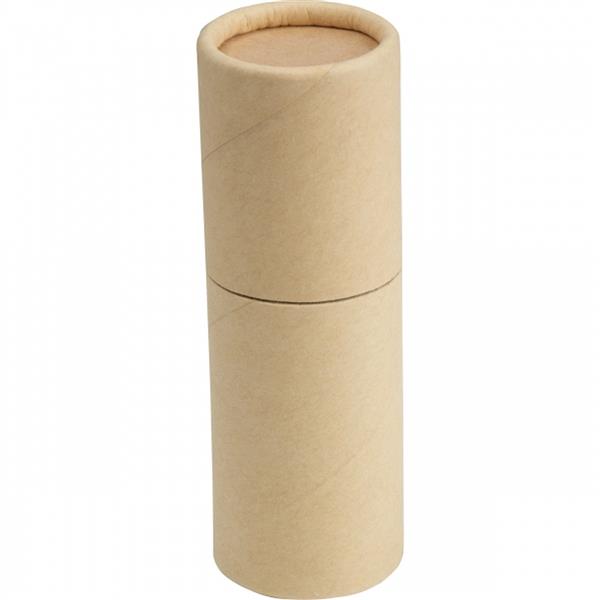Zestaw 12 kolorowych kredek, zapakowanych w cylindryczne, kartonowe pudełko.
